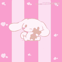 Cinnamoroll is a character series created by Sanrio in 2001, with character designs from Miyuki Okumura. The main character, Cinnamoroll, is a white puppy with chubby cheeks and long ears, blue eyes, pink cheeks, and a tail that resembles a cinnamon roll.
